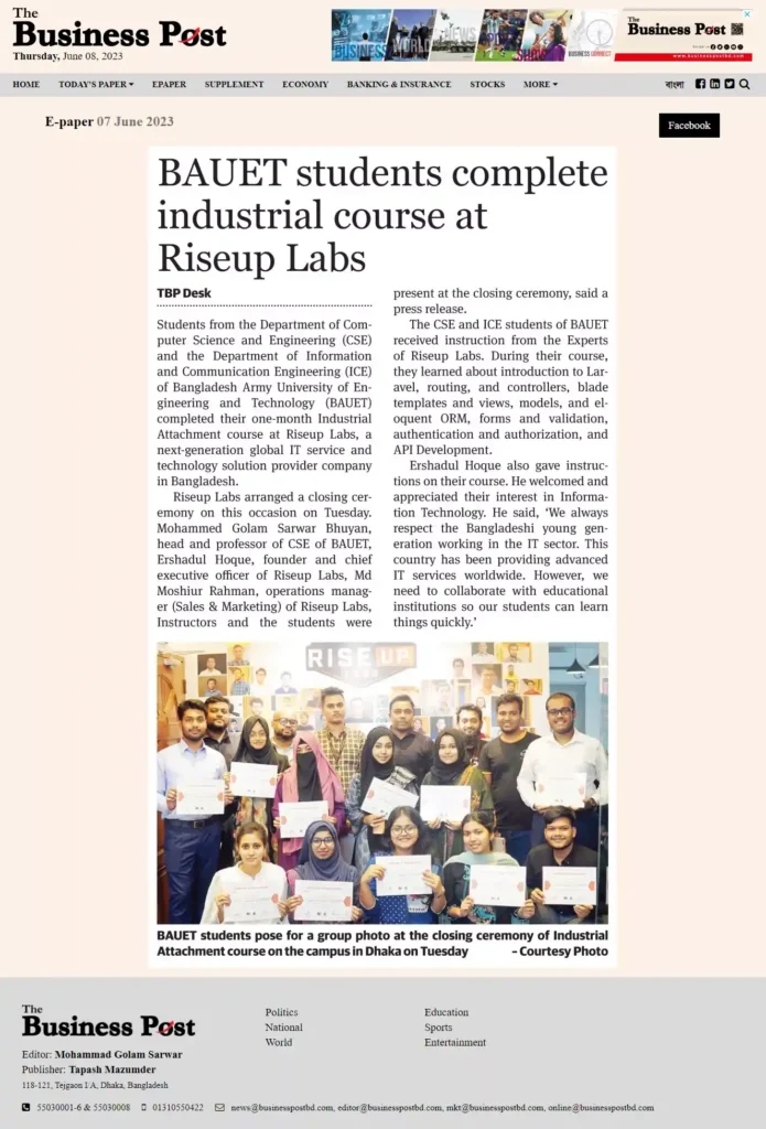 BAUET students complete industrial course at Riseup Labs (E-paper)