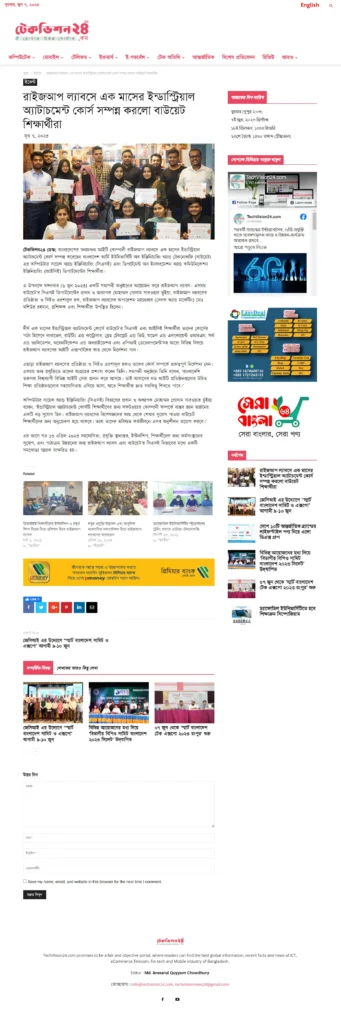 রাইজআপ ল্যাবসে এক মাসের ইন্ডাস্ট্রিয়াল অ্যাটাচমেন্ট কোর্স সম্পন্ন করলো বাউয়েট শিক্ষার্থীরা