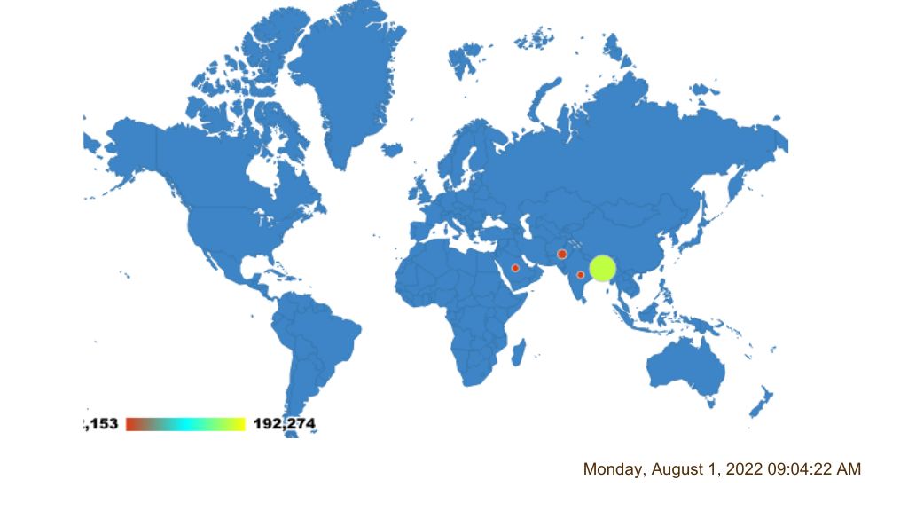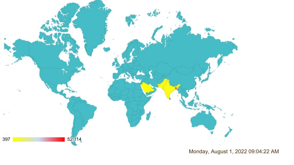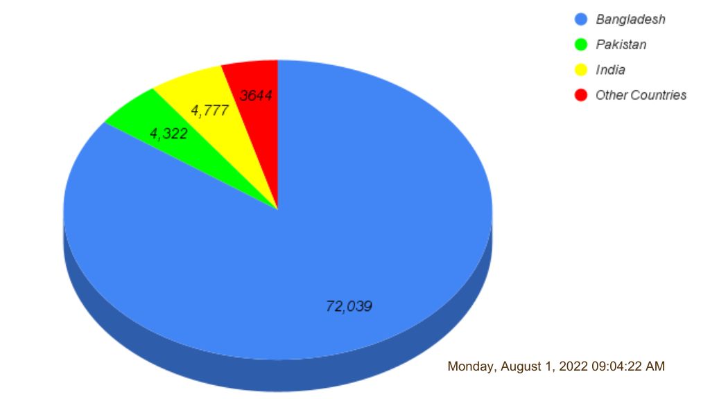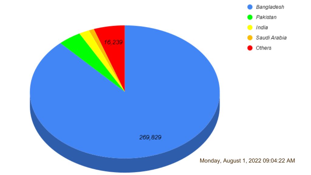 An average of 83,314 gamers were active in the last 28-day period. This is the chart on a country basis, where the gamers opened Meena Game and Meena Game 2 on 1 August 2022.