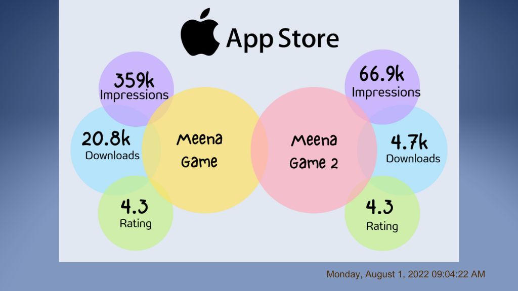 Meena Game and Meena Game 2 are available for iOS and macOS users. 426k impressions were made on both games in the iOS app store.
